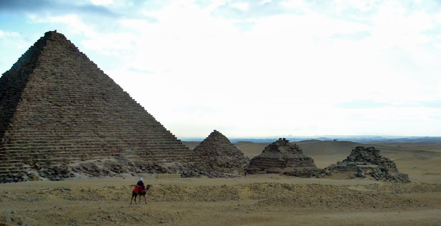 | Neben den beiden großen die Pyramide des Mykerinos und die drei kleinen Königinnenpyramiden | ||||