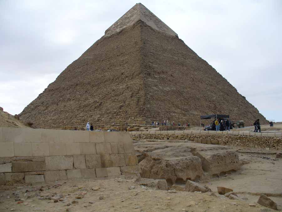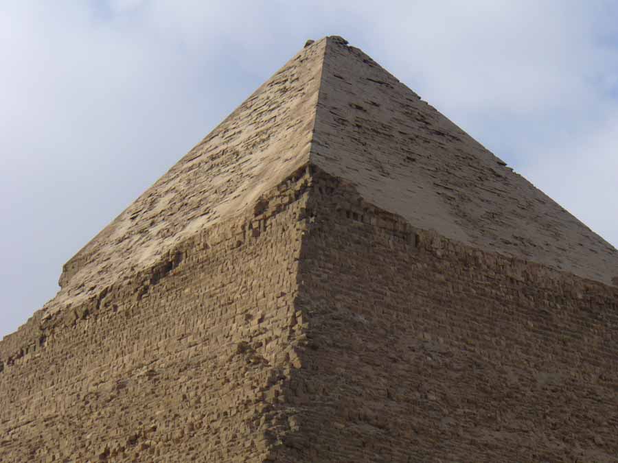 | Die mit Kalksteinplatten verkleidete Spitze der Chephren-Pyramide | ||||