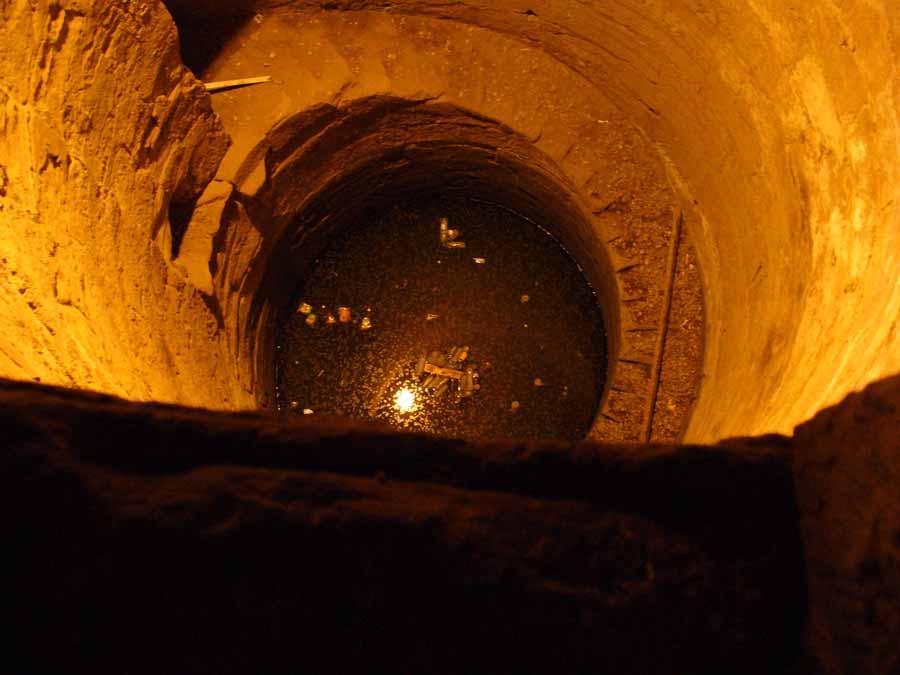 Ein "Nilometer". Der Schacht ist mit dem Nil verbunden. Anhand des Wasserstandes berechneten die Priester die Steuern. Wasserstand hoch = gute Ernten = hohe Steuern |