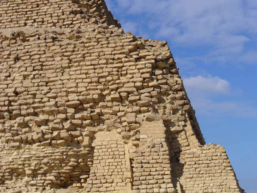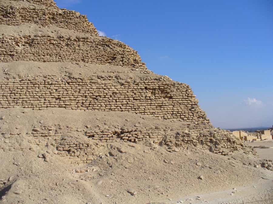 Dabei genügte es, dass das Äußere der Elemente das richtige Aussehen hatte, während das Innere vernachlässigt werden konnte. Mit der Stufenpyramide des Pharao Djoser aus der 3. Dynastie des Alten Reiches setzten die Pyramidenbauten ein. |