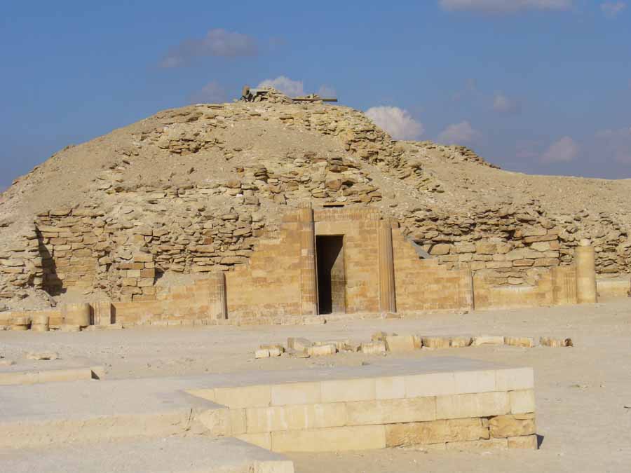 und Höfen für den Totenkult enthält. Sie gilt nach dem Gisr el-Mudir als das zweitälteste noch erhaltene, aus behauenen Steinen gemauerte Bauwerk Ägyptens. (Gisr el-Mudir ist das älteste bekannte aus behauenem Stein gemauerte Bauwerk in Ägypten und befindet sich in Sakkara einige hundert Meter westlich der Djoser-Pyramide) |
