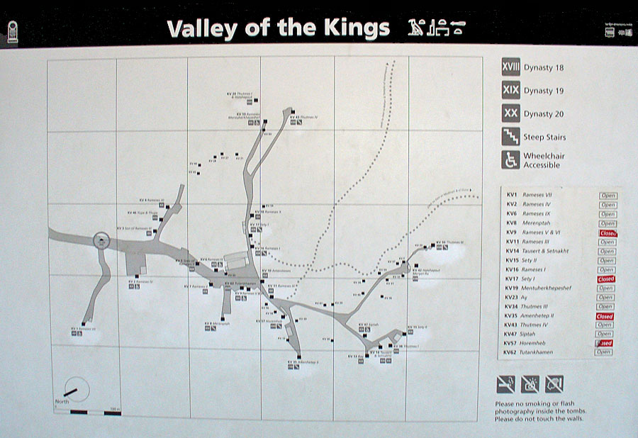 Das Tal der Könige liegt in der Nähe des altägyptischen Theben, heute etwa 5 km nordwestlich des Zentrums der oberägyptischen Stadt Luxor. |