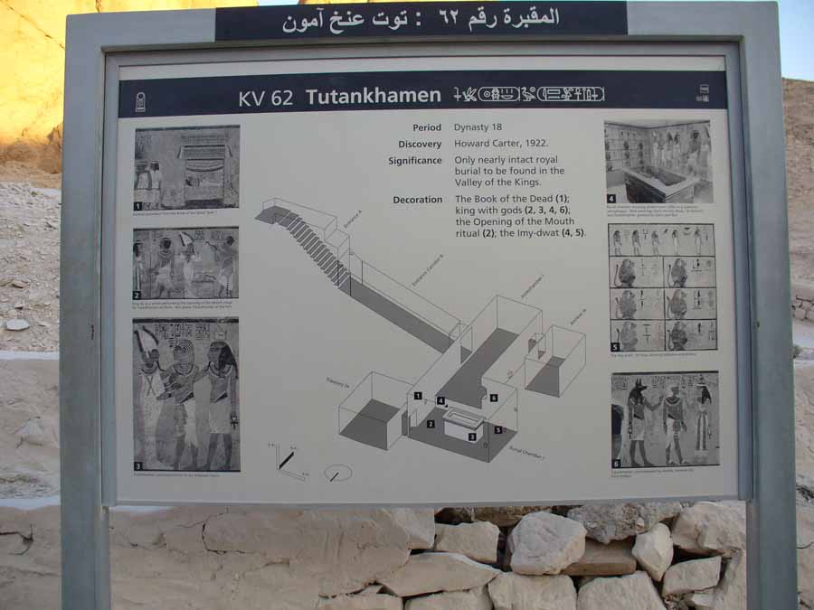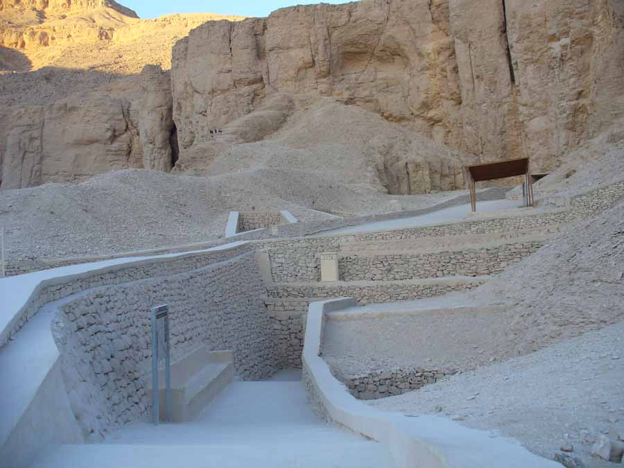 Trotz jahrtausendelanger Aktivität von Grabräubern und Plünderern lieferte das Tal der Könige den Ägyptologen der Neuzeit noch zahlreiche höchst wertvolle Grabungsfunde. Unter anderem wurde hier das weitgehend unversehrte Grab des Tutanchamun im Jahr 1922 von Howard Carter entdeckt. |