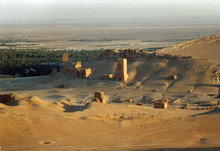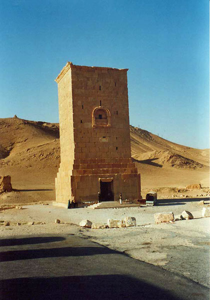 Die Grabtürme der Westnekropole sind einzigartig im Nahen Osten. Nach den Bauinschriften wurden die Grabanlagen zwischen 9 v. Chr. bis 128 n. Chr. errichtet. Das Grab des Elahel ist das größte Turmgrab. Es besaß zu fünf Geschosse, die durch enge Wendeltreppen verbunden waren. Im Turm fanden zahlreiche Tote ihre letzte Ruhestätte. Die Grabtürme waren das Grabhaus einer Familie. Ärmere Palmyrener konnten Grabstätten in einem der Gräber mieten. Die Särge wurden durch Schächte in das jeweilige Geschoss befördert. Das Äußere der Türme war in der Regel schlicht. Im Inneren waren die Türme jedoch mit Architekturdekor und Skulpturenschmuck reich verziert. Für die Archäologie bargen die Grabtürme eine Besonderheit: Es wurden Reste kostbarer Textilien gefunden. Dies lässt Rückschlüsse auf die Handelsverbindungen der Palmyrener zu. Im September 2015 sprengte die Terrororganisation Islamischer Staat drei der besterhaltenen Grabtürme. |
