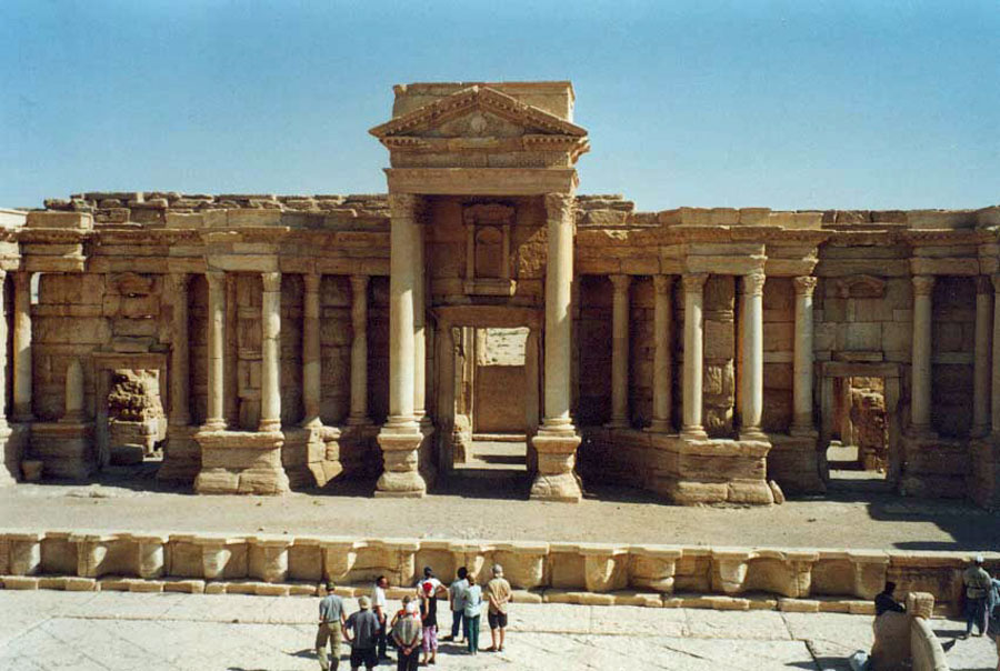| Das Bühnenhaus des Theaters (am 20. Januar 2017 vom IS zerstört) | |||||
